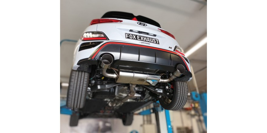 Fox Sportauspuff koncový tlumič výfuku s klapkou s koncovkou 1x130 Typ 14 na obou stranách pro Hyundai Kona N s motorem 2.0