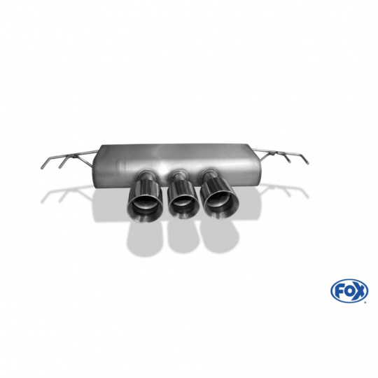 Koncový díl výfuku Fox Sportauspuff dodá vašemu vozu sytější sportovní zvuk a atraktivnější vzhled díky konstrukci z kvalitní nerezové oceli a stylové koncovce nebo koncovkám (u některých modelů jsou využívány originální koncovky v zadním nárazníku).