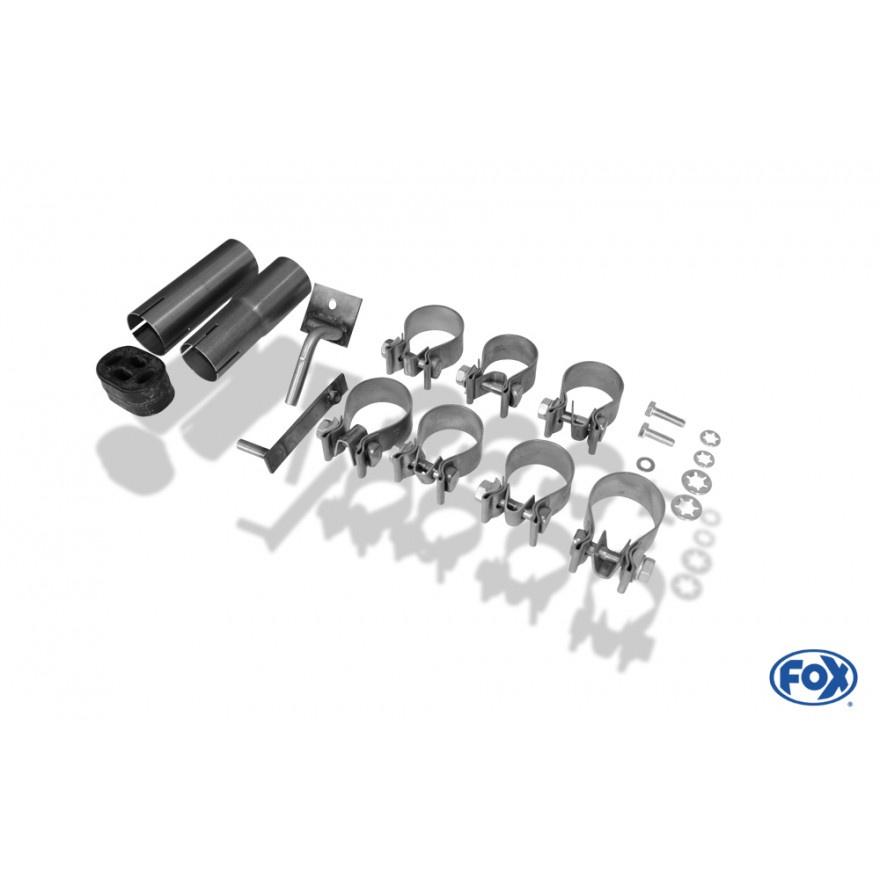 Výfukové systémy Fox se montují na původní tovární držáky bez nutnosti úprav. Montážní materiál je součástí balení.