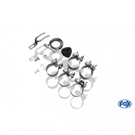 Výfukové systémy Fox se montují na původní tovární držáky bez nutnosti úprav. Montážní materiál je součástí balení.
