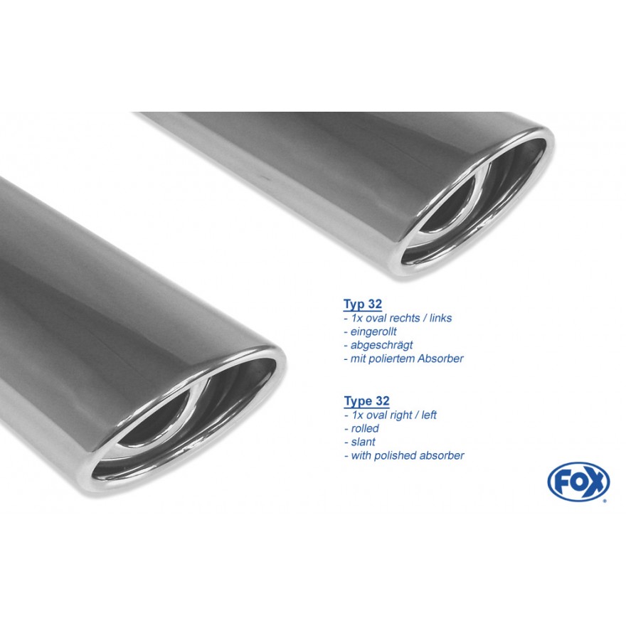 Koncový díl výfuku Fox Sportauspuff dodá vašemu vozu sytější sportovní zvuk a atraktivnější vzhled díky konstrukci z kvalitní nerezové oceli a stylové koncovce nebo koncovkám (u některých modelů jsou využívány originální koncovky v zadním nárazníku).