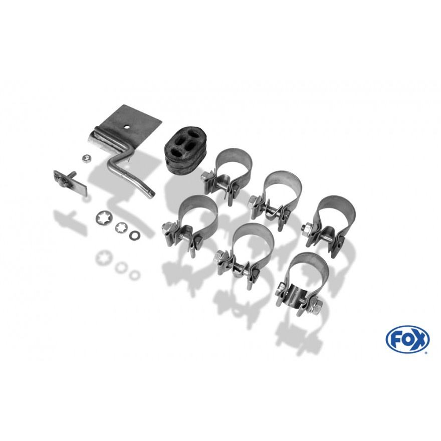 Výfukové systémy Fox se montují na původní tovární držáky bez nutnosti úprav. Montážní materiál je součástí balení.
