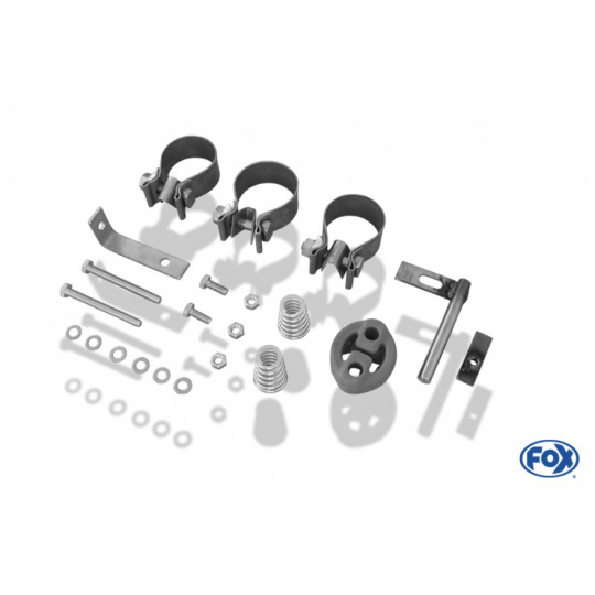Výfukové systémy Fox se montují na původní tovární držáky bez nutnosti úprav. Montážní materiál je součástí balení.