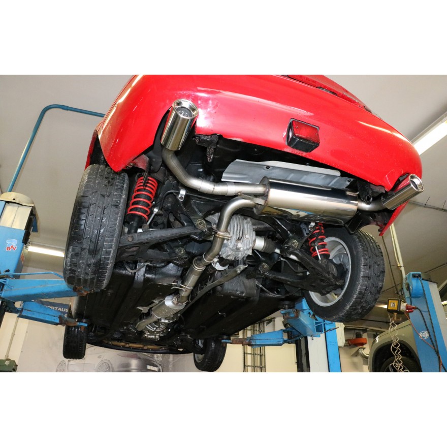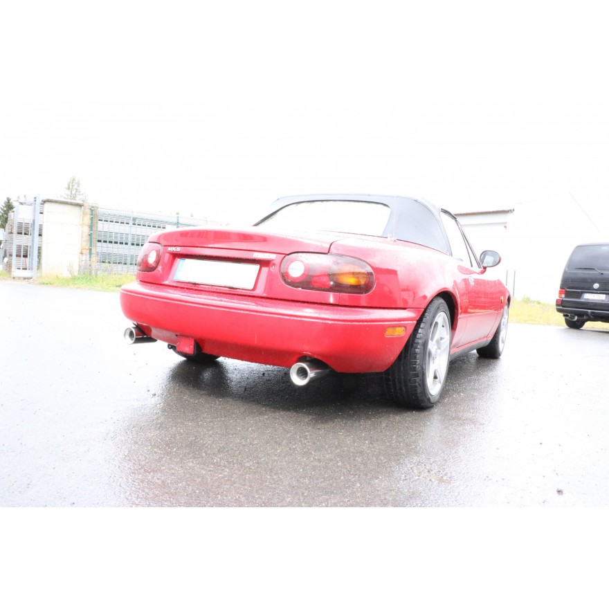Fox Sportauspuff koncový tlumič výfuku s koncovkou 1x90 Typ 13 na obou stranách pro Mazda MX5 NA s motorem 1.5, 1.6, 1.8