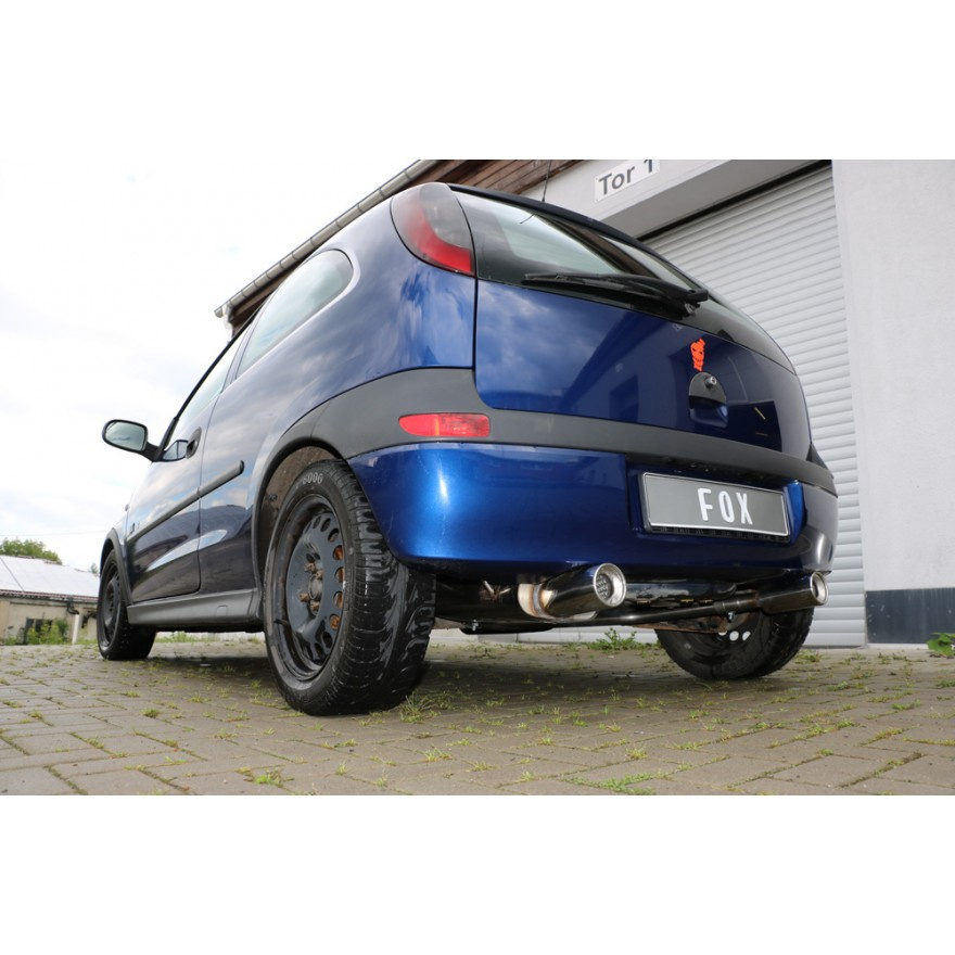 Fox Sportauspuff koncový tlumič výfuku s koncovkou 1x90 Typ 13 na obou stranách pro Opel Corsa C s motorem 1.0, 1.2, 1.3 D, 1.4, 1.7 D, 1.8