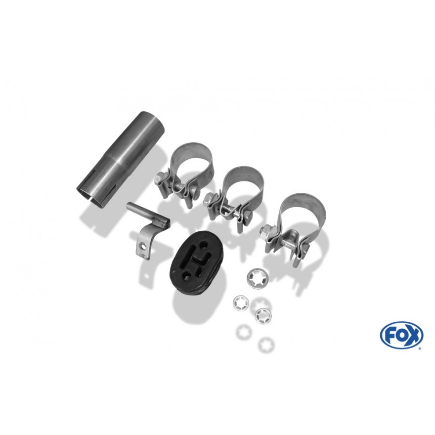 Výfukové systémy Fox se montují na původní tovární držáky bez nutnosti úprav. Montážní materiál je součástí balení.