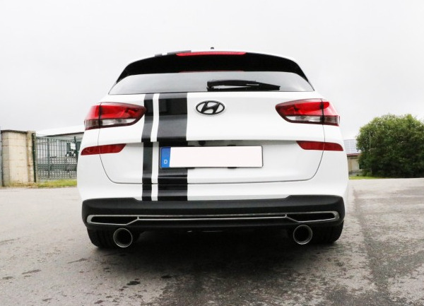 Fox Sportauspuff koncový tlumič výfuku s koncovkou 1x90 Typ 25 na obou stranách pro Hyundai I30 PDE 2017- s motorem 1.4, určeno pro Kombi