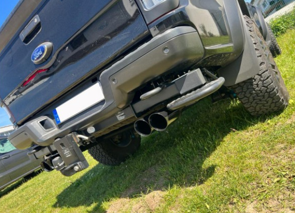 Fox Sportauspuff koncový tlumič výfuku s koncovkou 2x100 Typ 25 na obou stranách pro Ford Raptor s motorem 2.0 D, černé koncovky