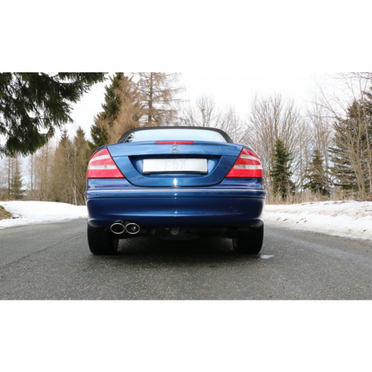 Fox Sportauspuff koncový tlumič výfuku s koncovkou 2x115x85 Typ 32 pro Mercedes CLK 209 2002- s motorem 1.8 K, 2.6, 2.7 CDI, 3.0, 3.0 CDI, 3.2, 3.5, 5.0