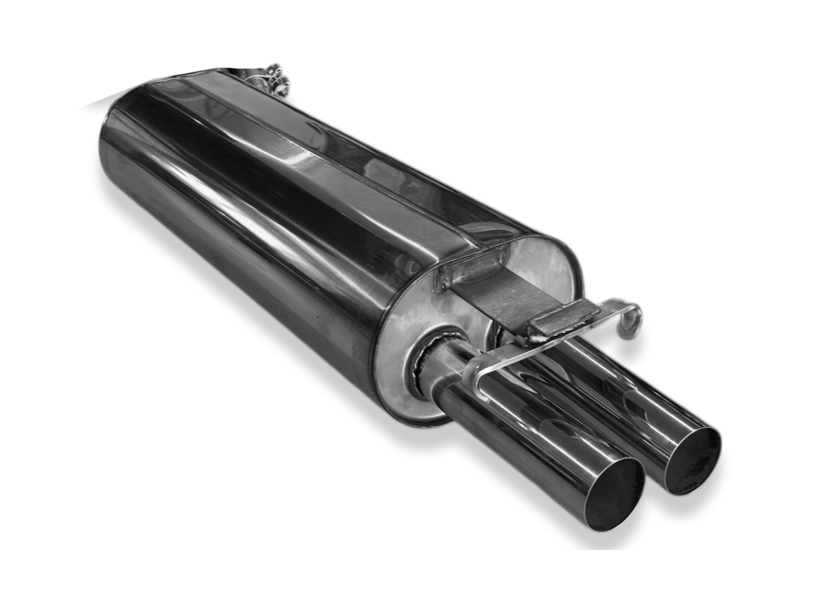 Fox Sportauspuff koncový tlumič výfuku s koncovkou 2x55 Typ 10 pro Mercedes třída E W123 s motorem 2.0, pro 4válcové motory