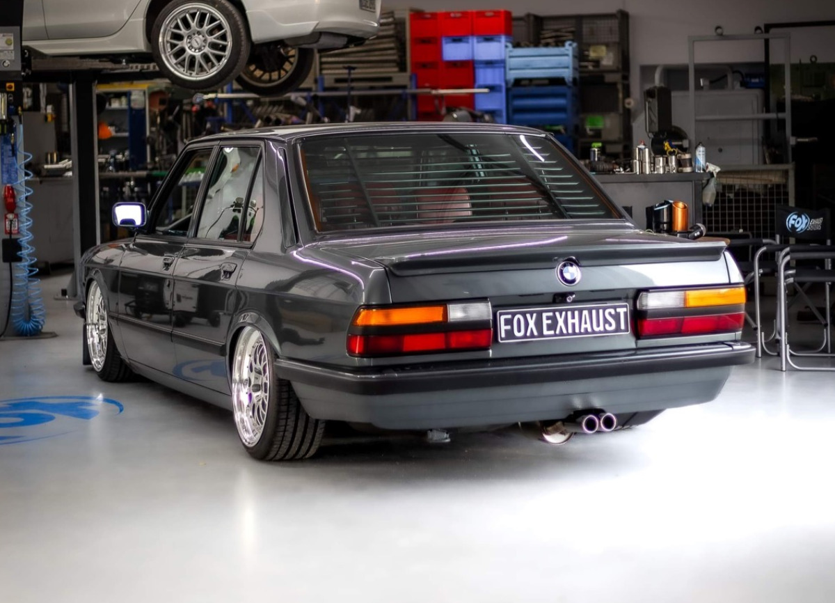 Fox Sportauspuff koncový tlumič výfuku s koncovkou 2x63 Typ 12 pro BMW řada 5 E28 s motorem 2.0, 520i bez katalyzátoru