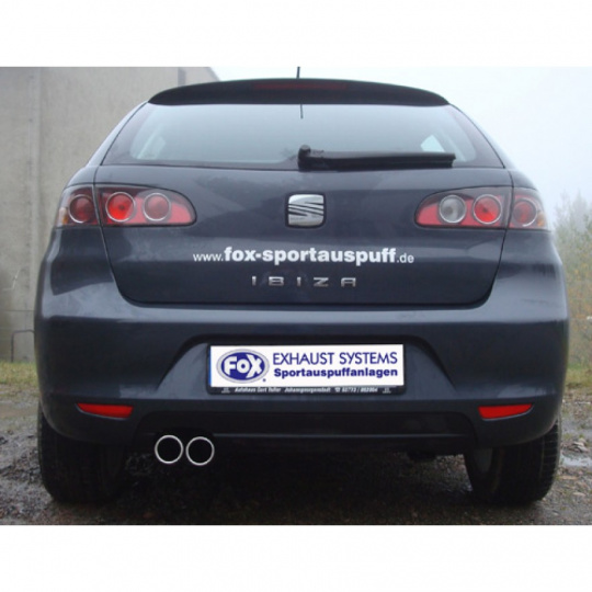 Fox Sportauspuff koncový tlumič výfuku s koncovkou 2x70 Typ 13 pro Seat Ibiza 6L s motorem 1.2, 1.4, 1.4 TDI, 1.6, 1.9 SDI, 1.9 TDI, pro model Sport bez výřezu v náraz.