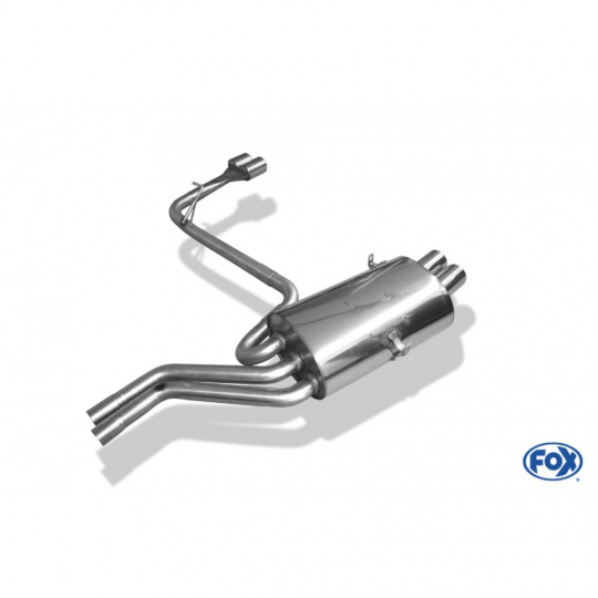 Fox Sportauspuff koncový tlumič výfuku s koncovkou 2x76 Typ 10 na obou stranách pro BMW řada 3 E46 s motorem 2.0, 2.2, 2.5, 2.8, 3.0
