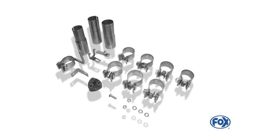 Výfukové systémy Fox se montují na původní tovární držáky bez nutnosti úprav. Montážní materiál je součástí balení.