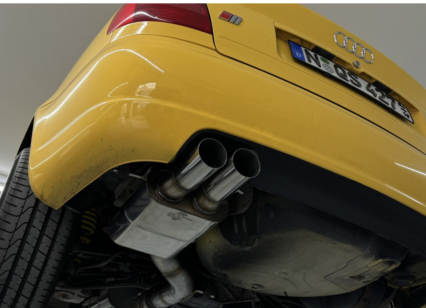 Fox Sportauspuff koncový tlumič výfuku s koncovkou 2x80 Typ 10 dvojitá bočně posunutá pro Audi S4 B5 s motorem 2.7