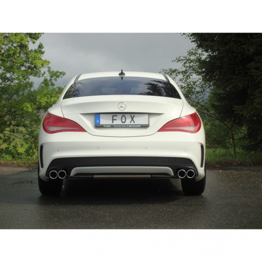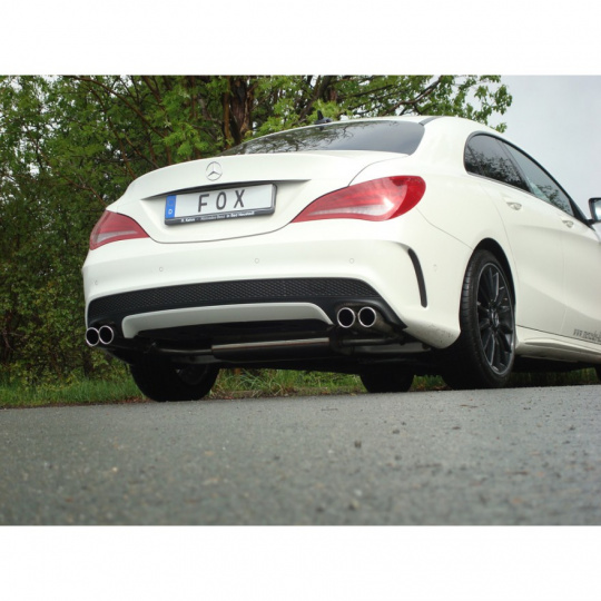 Fox Sportauspuff koncový tlumič výfuku s koncovkou 2x80 Typ 12 na obou stranách pro Mercedes CLA 2013- s motorem 1.6, 2.0, s pohonem předních kol