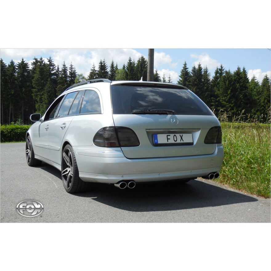 Fox Sportauspuff koncový tlumič výfuku s koncovkou 2x88x74 Typ 32 na obou stranách pro Mercedes třída E S211 2002- s motorem 1.8, 2.6, 2.8 CDI, 3.0, 3.2, 3.2 CDI, 4.0 CDI, 5.0
