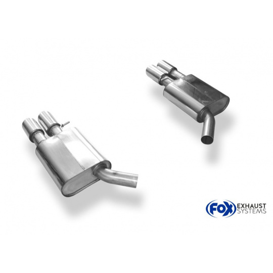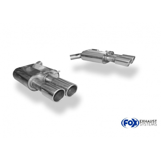 Koncový díl výfuku Fox Sportauspuff dodá vašemu vozu sytější sportovní zvuk a atraktivnější vzhled díky konstrukci z nerezové oceli s ozdobnou koncovkou nebo koncovkami výfuku (u některých vozů jsou využívány originální koncovky v zadním nárazníku).
