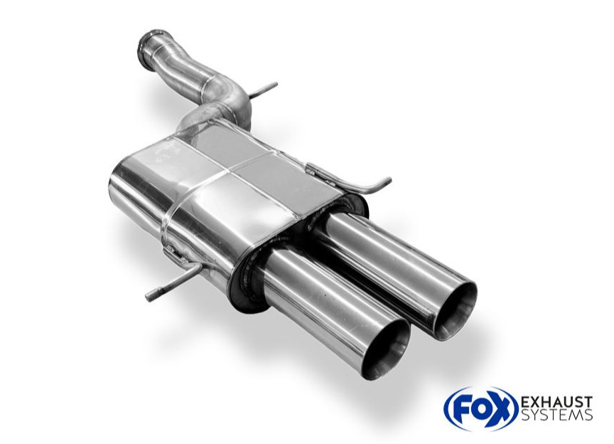Koncový díl výfuku Fox Sportauspuff dodá vašemu vozu sytější sportovní zvuk a atraktivnější vzhled díky konstrukci z nerezové oceli s ozdobnou koncovkou nebo koncovkami výfuku (u některých vozů jsou využívány originální koncovky v zadním nárazníku).