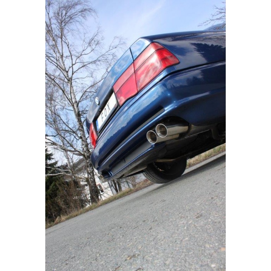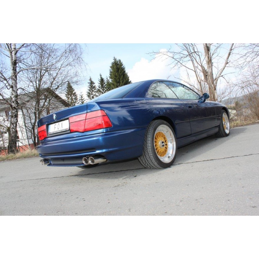 Fox Sportauspuff koncový tlumič výfuku s koncovkou 2x90 Typ 25 na obou stranách pro BMW řada 8 1990- s motorem 5.0, vč. předních tlumičů