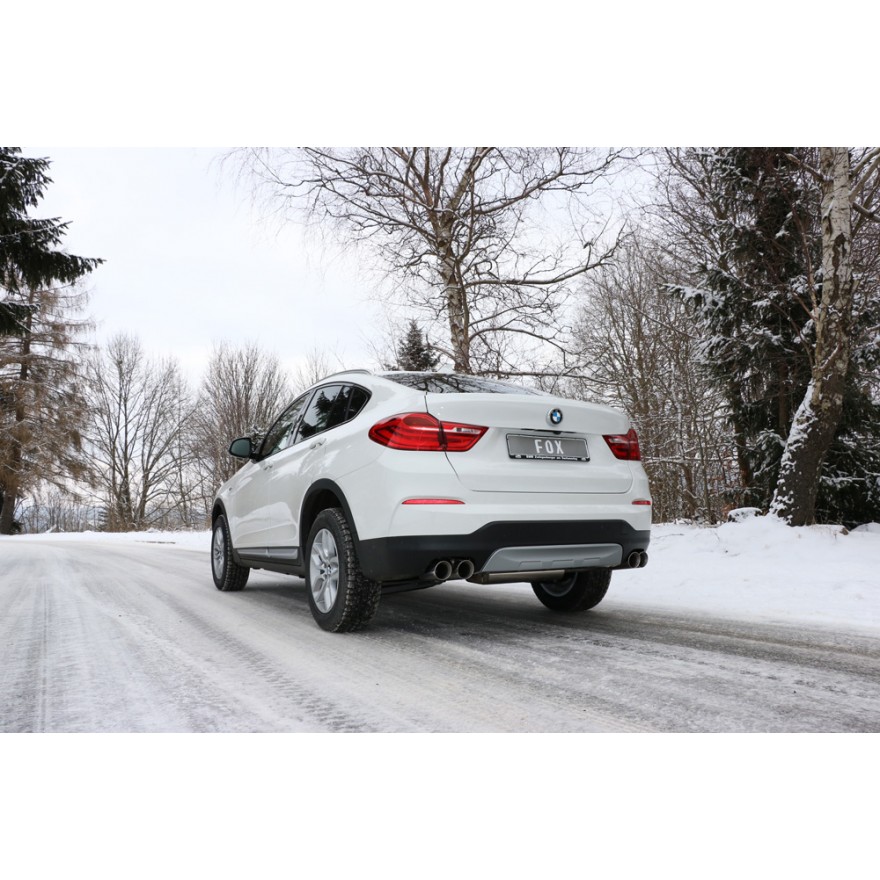 Fox Sportauspuff koncový tlumič výfuku s koncovkou 2x90 Typ 25 na obou stranách pro BMW X4 F26 2014- s motorem 2.0, 2.0 D, 3.0 d, mimo M-paket