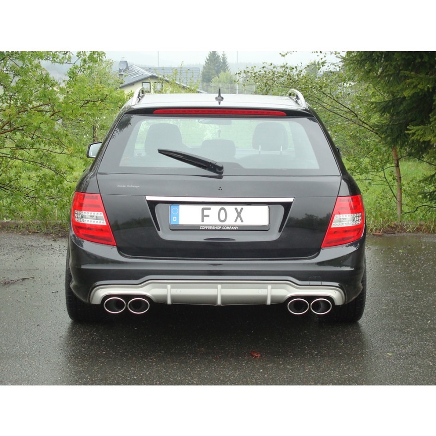 Fox Sportauspuff koncový tlumič výfuku s koncovkou pro Mercedes třída C 204 2007- s motorem 1.6, 1.8, 2.2 D, facelift, pro vozy s AMG-paketem a C63 difuzorem