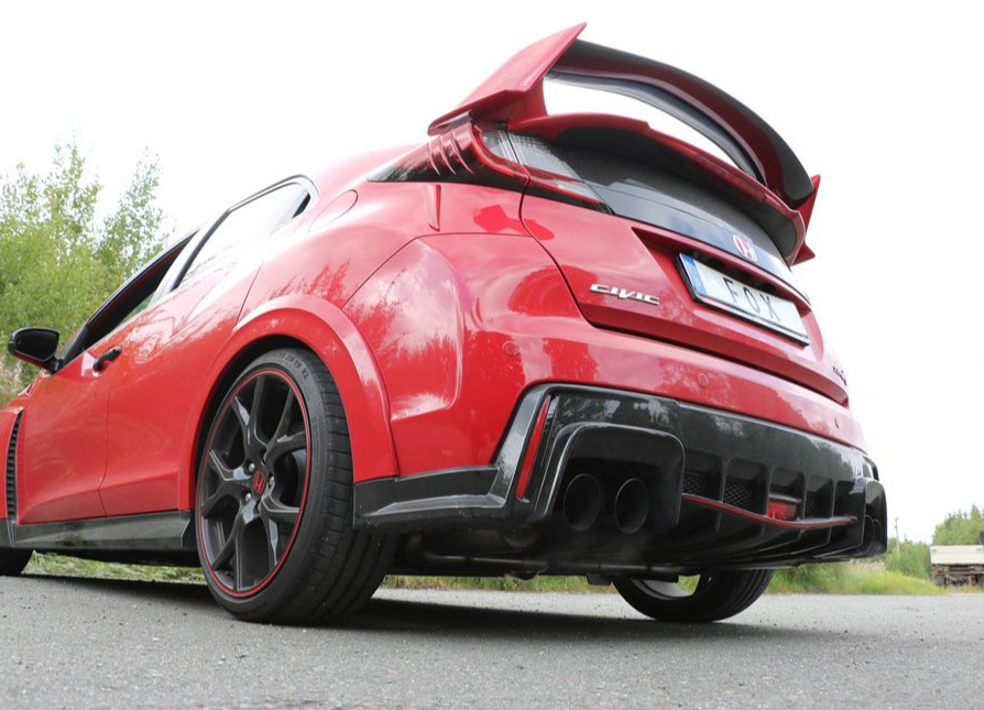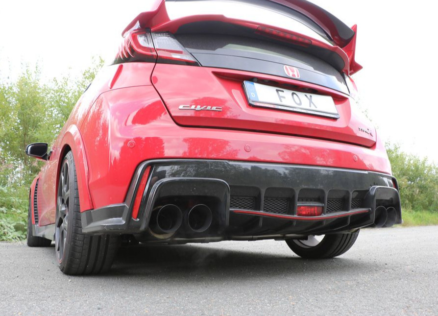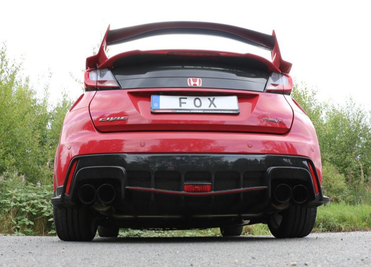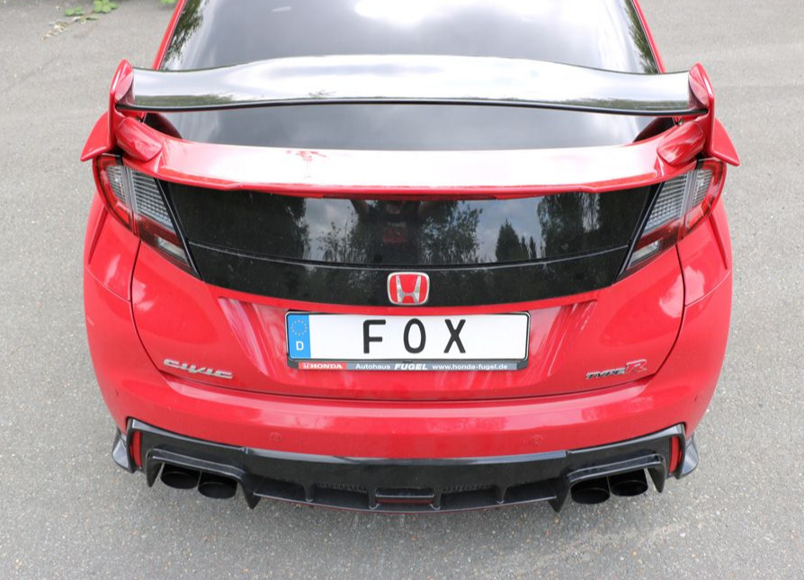 Fox Sportauspuff koncový tlumič výfuku s příčným výstupem s koncovkou 2x90 Typ 25 černé na obou stranách pro Honda Civic Type-R 04/2015-03/2017 s motorem 2.0