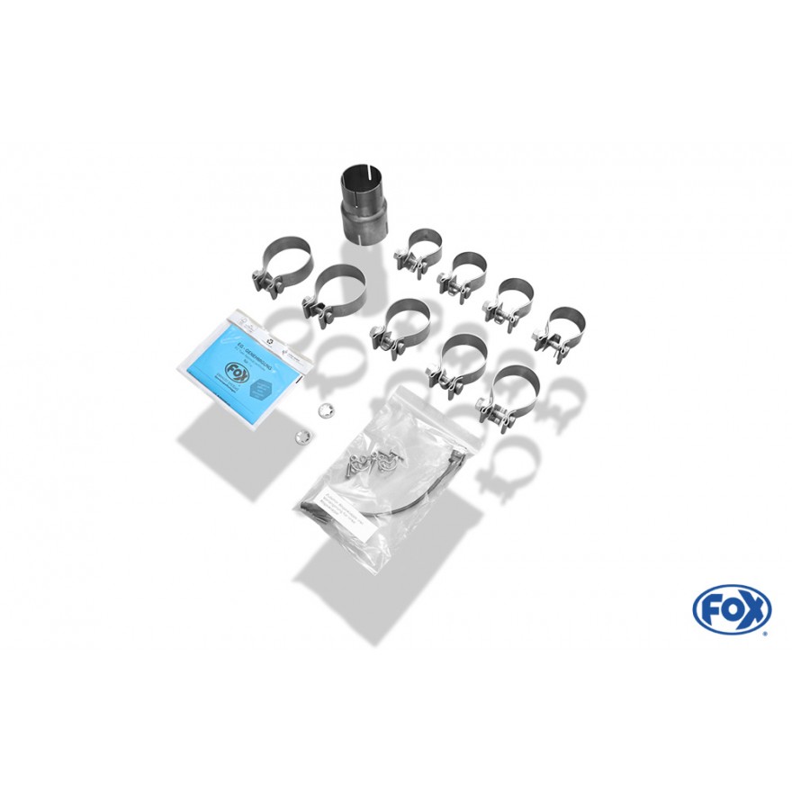 Výfukové systémy Fox se montují na původní tovární držáky, kterými je vozidlo vybaveno. Montážní materiál je součástí balení.