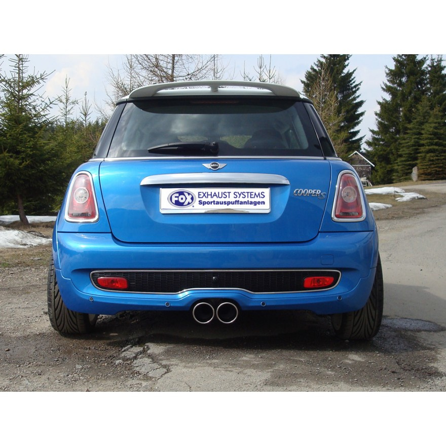 Fox Sportauspuff koncový tlumič výfuku s vývodem uprostřed s koncovkou 2x100 Typ 16 pro Mini Cooper S R56 2006- s motorem 1.6