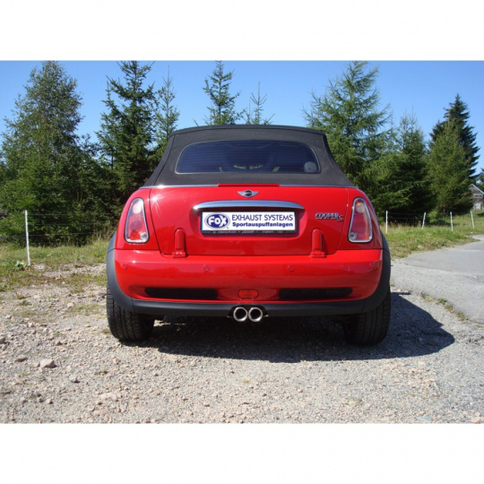 Fox Sportauspuff koncový tlumič výfuku s vývodem uprostřed s koncovkou 2x76 Typ 13 pro Mini Cooper S Cabrio R52 2004- s motorem 1.6