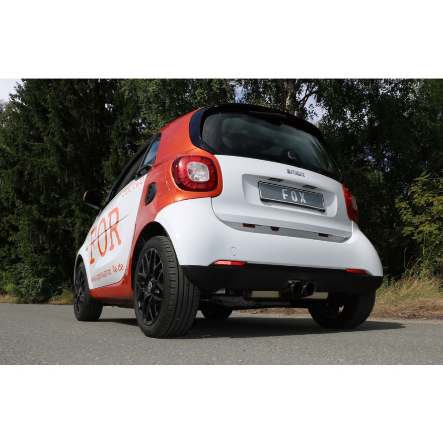 Fox Sportauspuff koncový tlumič výfuku s vývodem uprostřed s koncovkou 2x80 Typ 14 pro Smart Fortwo 453 s motorem 0.9, 1.0