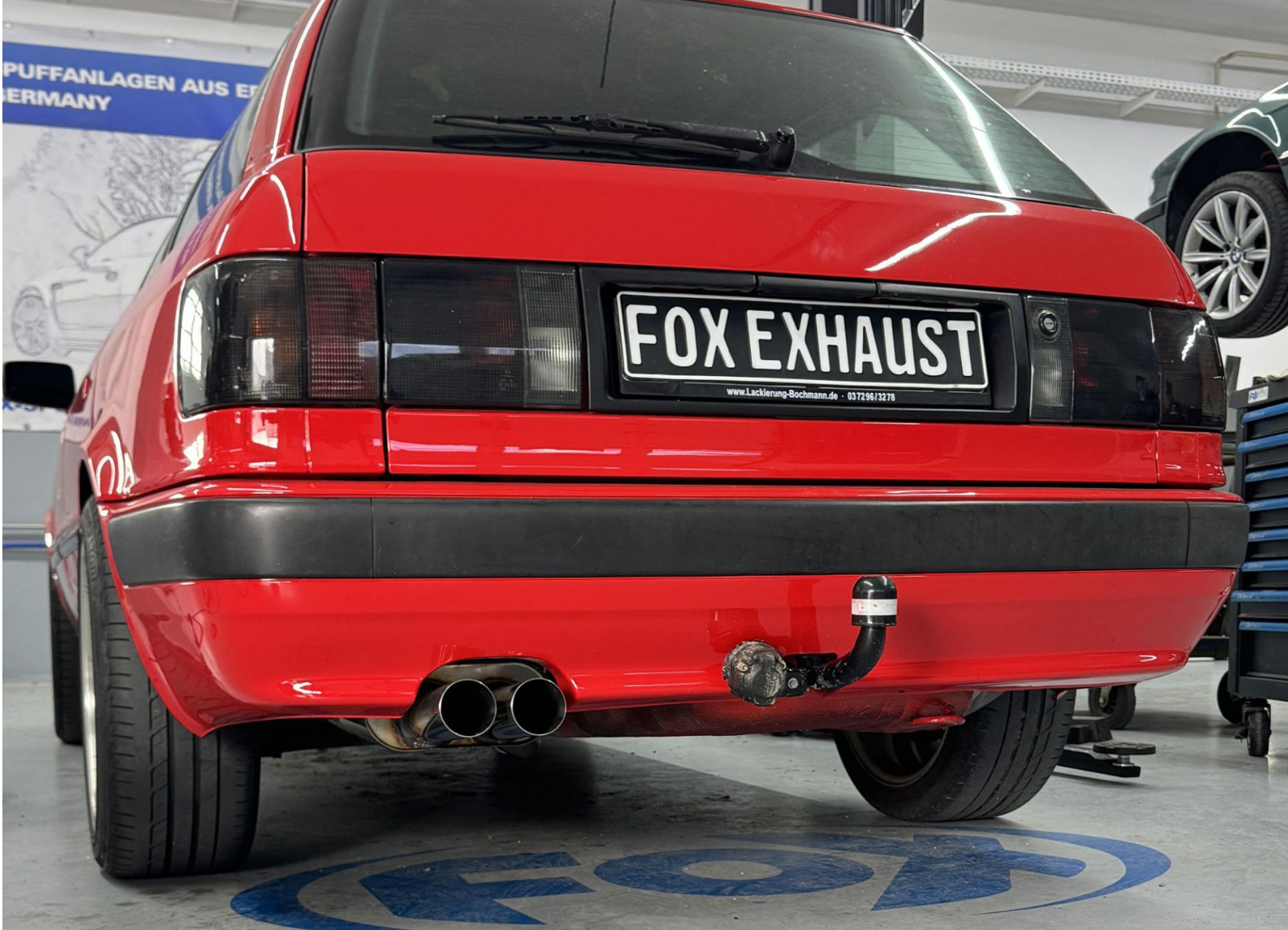 Všechny výfukové systémy Fox jsou 100% vyráběny v Německu. Koncovky koncových tlumičů jsou ručně leštěny do vysokého lesku (s výjimkou černě lakovaných koncovek nebo systémů zakončených do továrních koncovek vozu umístěných v zadním nárazníku).