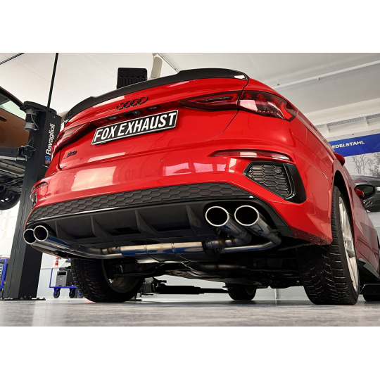 Fox Sportauspuff poloviční výfukový systém od katalyzátoru s výfukovými klapkami s koncovkou 2x106x71 Typ 44 na obou stranách pro Audi S3 GY 2020- s motorem 2.0 l