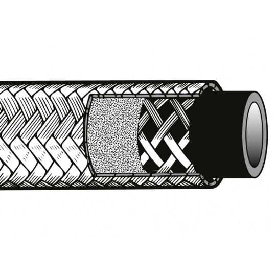 Hadice je vyrobena z bezešvého nitrilu a vyztužena nerezovou ocelí. Navíc je zvenčí kompletně chráněna opletem rovněž z nerezové oceli.