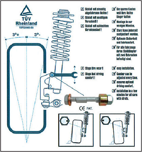 2ks šroubů pro nastavení odklonu předního kola o +/- 0-3stupně. Průměr šroubu / délka: 17mm / 35,0-50,0mm.