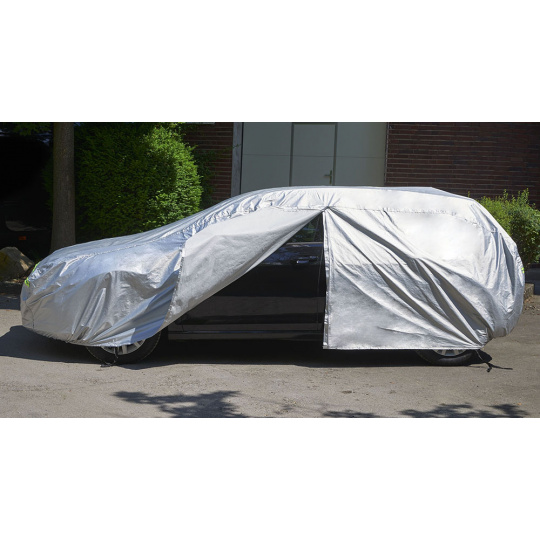 Kvalitní krycí auto plachta s rozepínáním na dveře. Plachta je voděodolná, prodyšná a ochrání Váš vůz před deštěm, prachem, sněhem a lehkým krupobitím. Má našité extra kapsy pro zpětná zrcátka, aby byl vůz co nejlépe ochráněn a plachta neodstávala. Ve spodní části jsou popruhy pro přivázání např. je kolu.