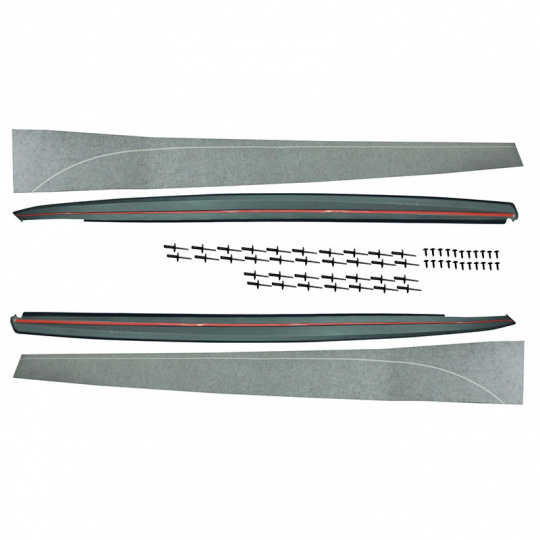 Perfektní zpracování, lakovatelný plast, jednoduchá montáž. Montážní příslušenství je součástí balení. Součástí balení jsou také černé samolepky na prahy ve stylu M Performance.
