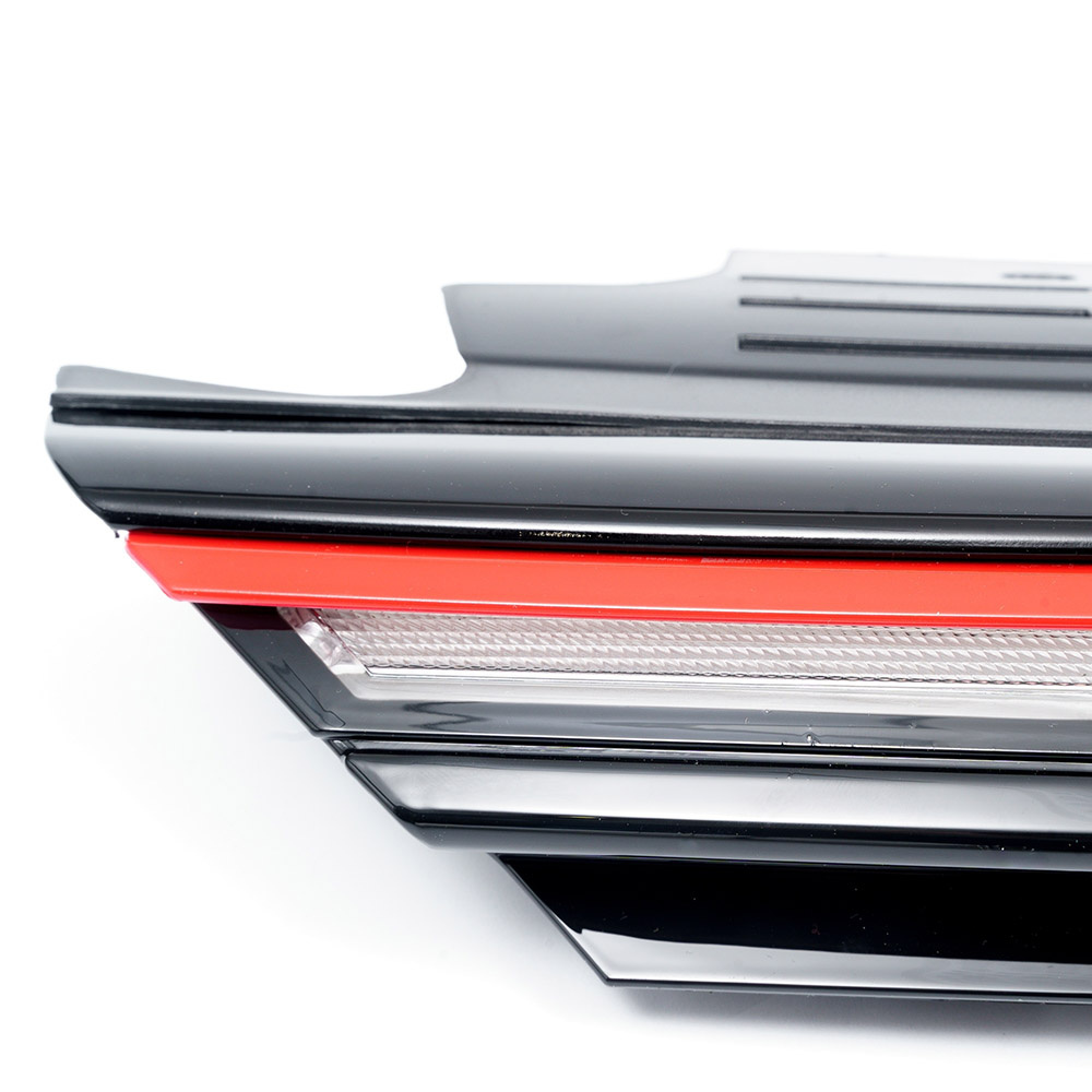 Nárazník má krytku tažného oka, mřížky a otvory pro PDC, masku s LED páskem. Není vhodný pro vozy s SRA (ostřikovače světel). Součástí nárazníku je veškeré vyobrazené příslušenství.