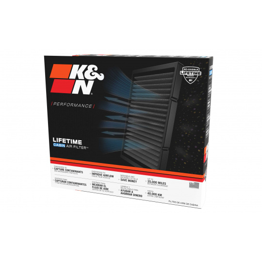 Kabinový filtr K&N účinně chrání před škodlivými částicemi ve vzduchu, který je ventilován do kabiny vozu. Díky konstrukci z netkané syntetické textilie s elektrostatickým nábojem účinně zachytává částečky plísní, spór, hub, prachu a dalších částic. Filtr je navíc speciálně upraven tak, aby zadržoval kontaminanty, které u běžných kabinových filtrů způsobují nežádoucí zápach.