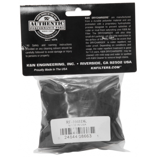 Návlek na filtr K&N je vyrobený z polyesteru. Díky tomu dokáže nejen filtrovat hrubé nečistoty, ale také účinně odpuzovat vodu, aniž by byl omezený průtok vzduchu. Voděodpudivá vrstva má na návleku životnost cca 1-2 roky. Poté návlek funguje již jen jako předřadné filtrační médium proti hrubým nečistotám (například pro off-road použití apod.).