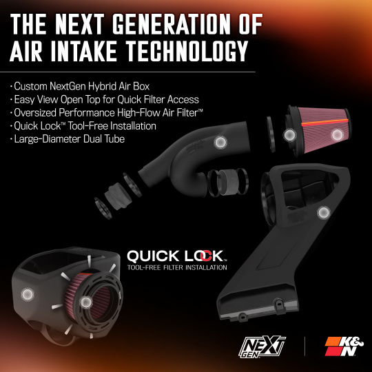 K&N je světovým lídrem ve vývoji sportovních sacích systémů. Každý kit vzniká na základě laserového 3D skenování motorového prostoru, čímž se zajistí dokonalé usazení a optimalizace vedení vzduchu. Pozornost je věnována každému dílu – trubkám, spojkám i sponám – pro snadnou instalaci a bezchybnou funkci celku.