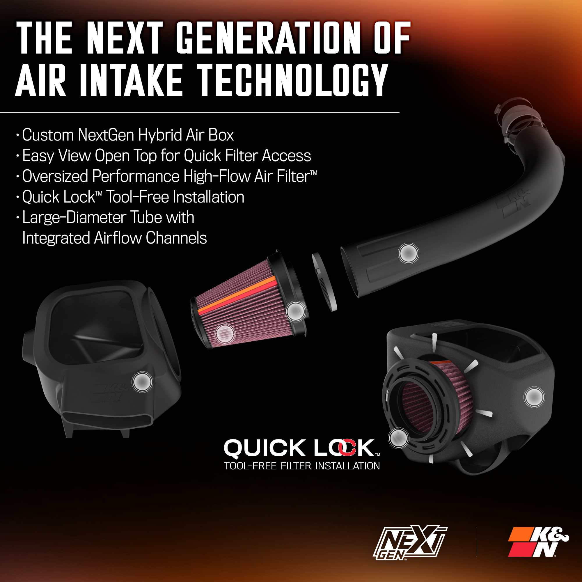 K&N je světovým lídrem ve vývoji sportovních sacích systémů. Každý kit vzniká na základě laserového 3D skenování motorového prostoru, čímž se zajistí dokonalé usazení a optimalizace vedení vzduchu. Pozornost je věnována každému dílu – trubkám, spojkám i sponám – pro snadnou instalaci a bezchybnou funkci celku.