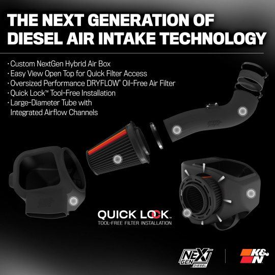 K&N je světovým lídrem ve vývoji sportovních sacích systémů. Každý kit vzniká na základě laserového 3D skenování motorového prostoru, čímž se zajistí dokonalé usazení a optimalizace vedení vzduchu. Pozornost je věnována každému dílu – trubkám, spojkám i sponám – pro snadnou instalaci a bezchybnou funkci celku.