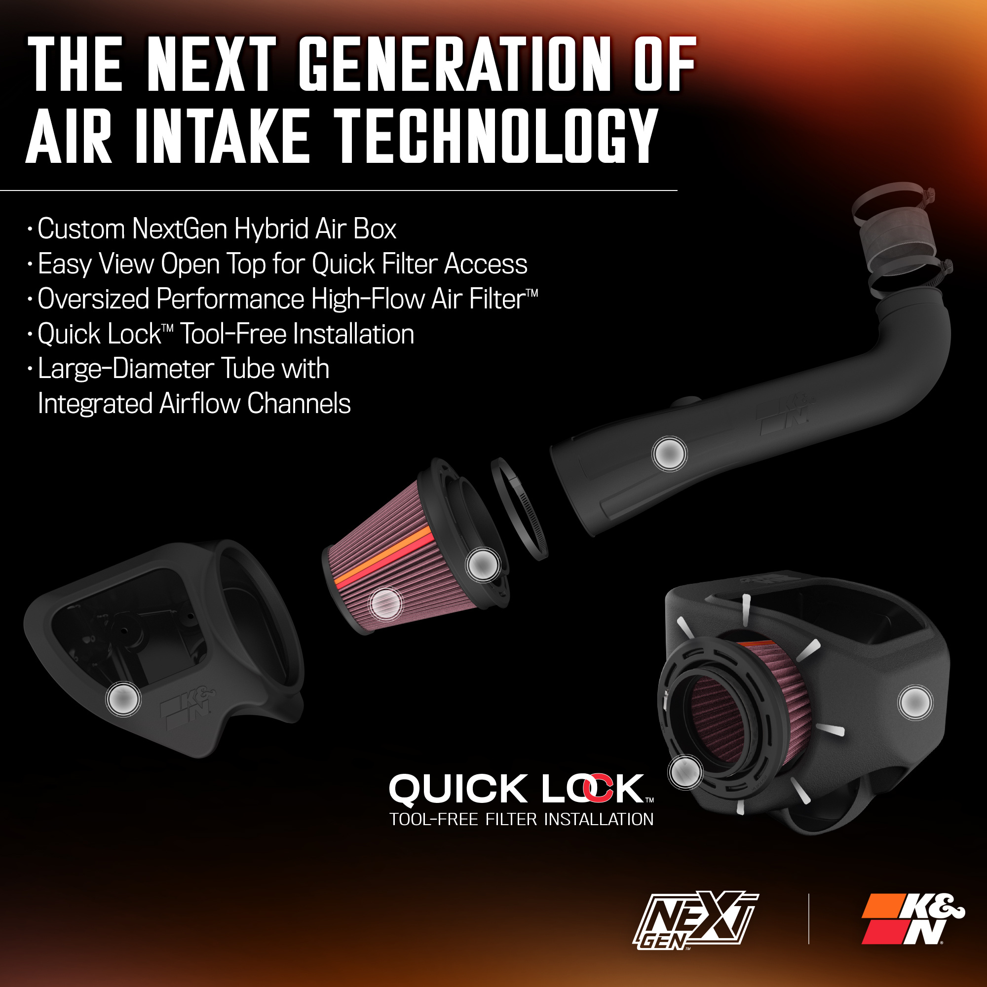 K&N je světovým lídrem ve vývoji sportovních sacích systémů. Každý kit vzniká na základě laserového 3D skenování motorového prostoru, čímž se zajistí dokonalé usazení a optimalizace vedení vzduchu. Pozornost je věnována každému dílu – trubkám, spojkám i sponám – pro snadnou instalaci a bezchybnou funkci celku.