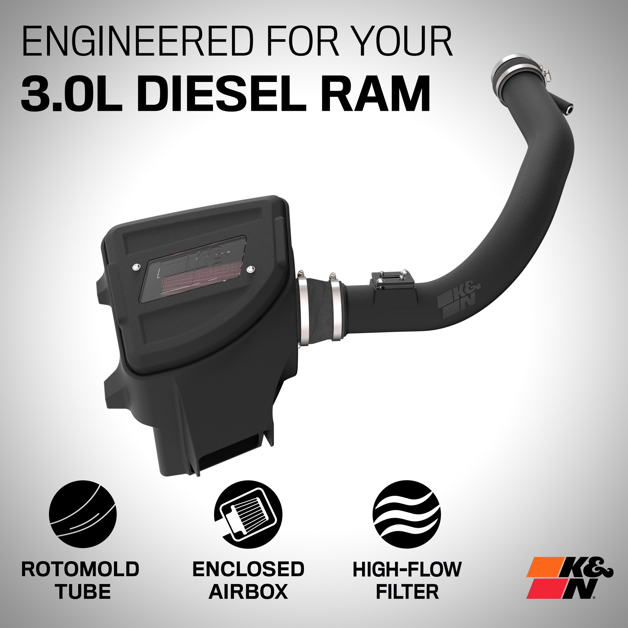 K&N sportovní kit sání Série 63 Aircharger pro Ram 1500 3.0L Diesel r.v. 2020-2023