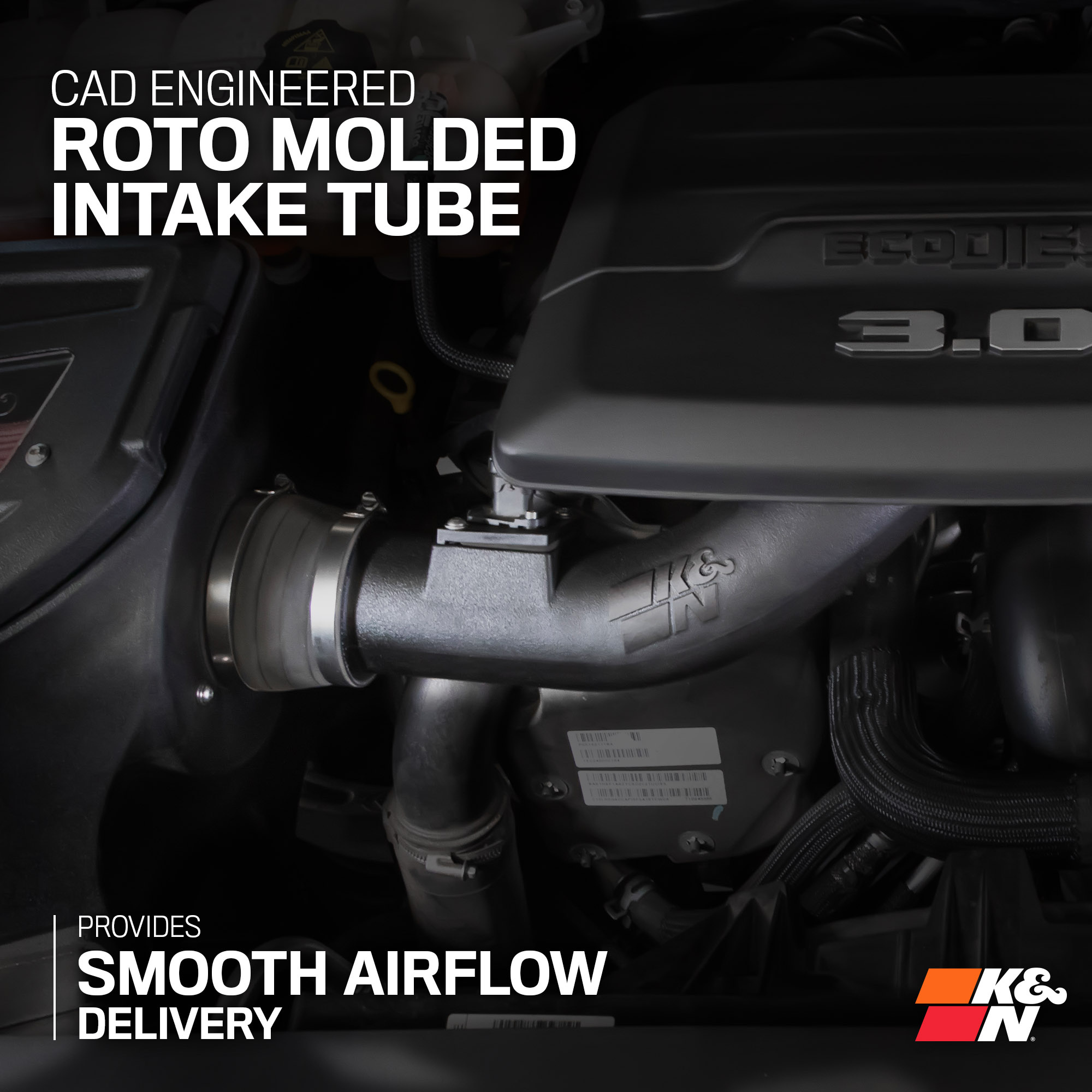 K&N je světovým lídrem ve vývoji sportovních sacích systémů. Každý kit vzniká na základě laserového 3D skenování motorového prostoru, čímž se zajistí dokonalé usazení a optimalizace vedení vzduchu. Pozornost je věnována každému dílu – trubkám, spojkám i sponám – pro snadnou instalaci a bezchybnou funkci celku.
