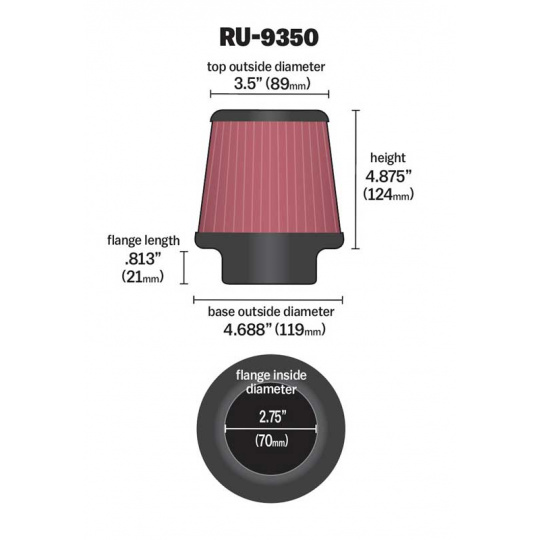 ROZMĚRY A PARAMETRY VLOŽKY FILTRU K&N RU-9350
