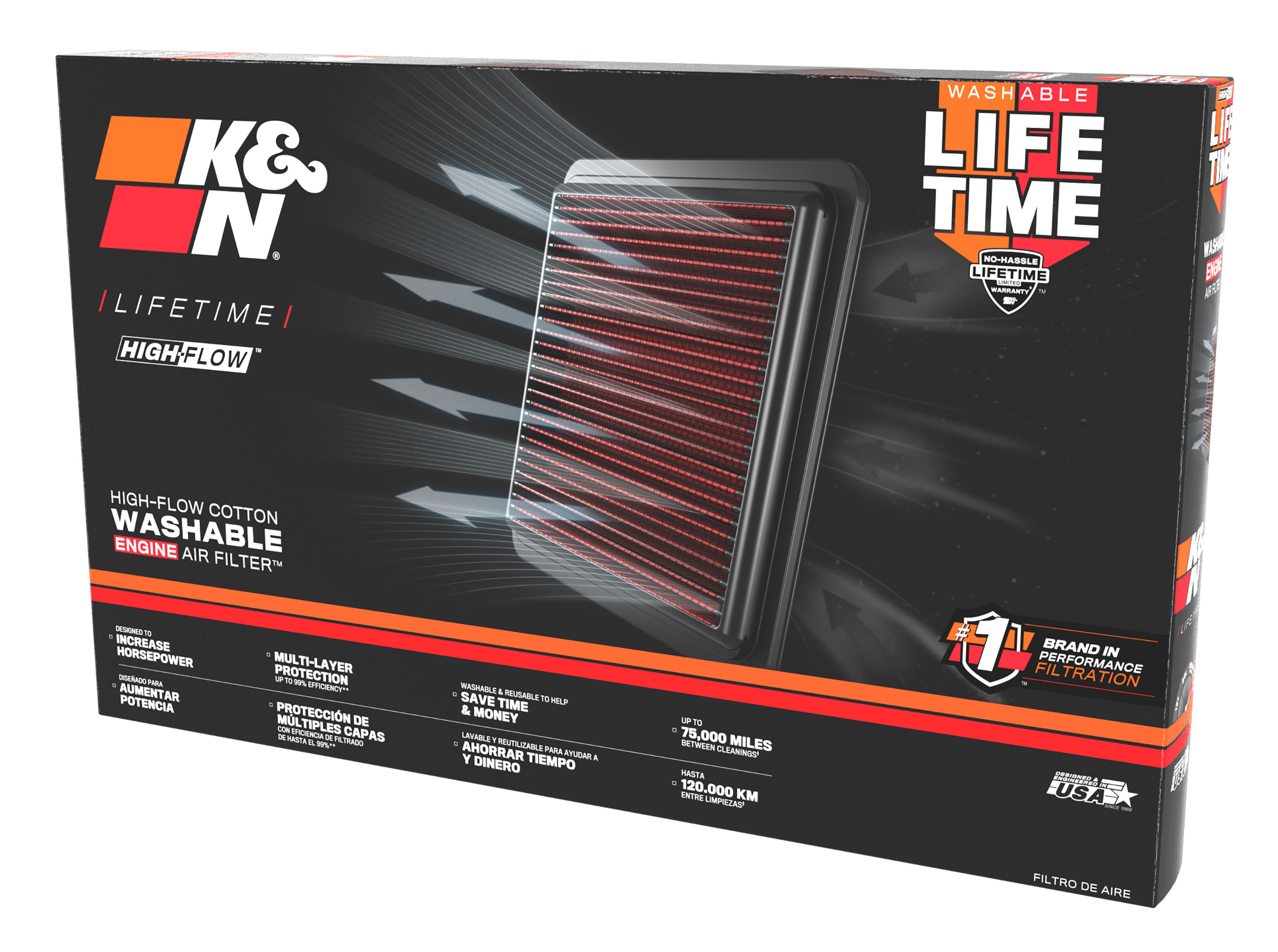 Není překvapením, že vzduchové filtry K&N používají špičkové závodní týmy při závodech jako je Baja 1000, 24 hodin Le Mans, NASCAR nebo dragstery ve sprintech. Ve všech těchto případech se filtry K&N starají o dostatečný přísun čerstvého vzduchu a chrání motor před nečistotami.