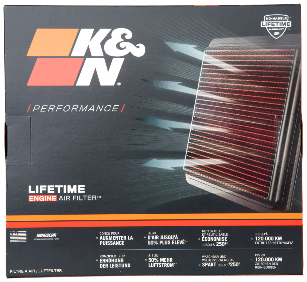 Filtr K&N tvarově přesně odpovídá originálnímu filtru ve voze. Instalace je jednoduchá a zvládne ji každý – stačí nahradit původní papírový filtr.