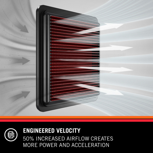 Sportovní filtr K&N má až o 50 % vyšší propustnost vzduchu než běžné papírové filtry. Zlepšený přísun vzduchu vede ke zvýšení výkonu a točivého momentu, přičemž filtr zároveň poskytuje lepší ochranu motoru před nečistotami.